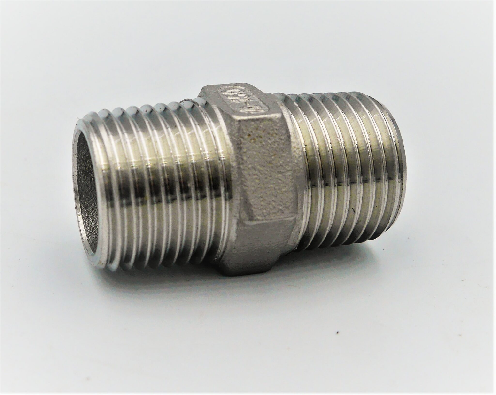 Stainless steel nipple connector, m-m, 1/2 inch.